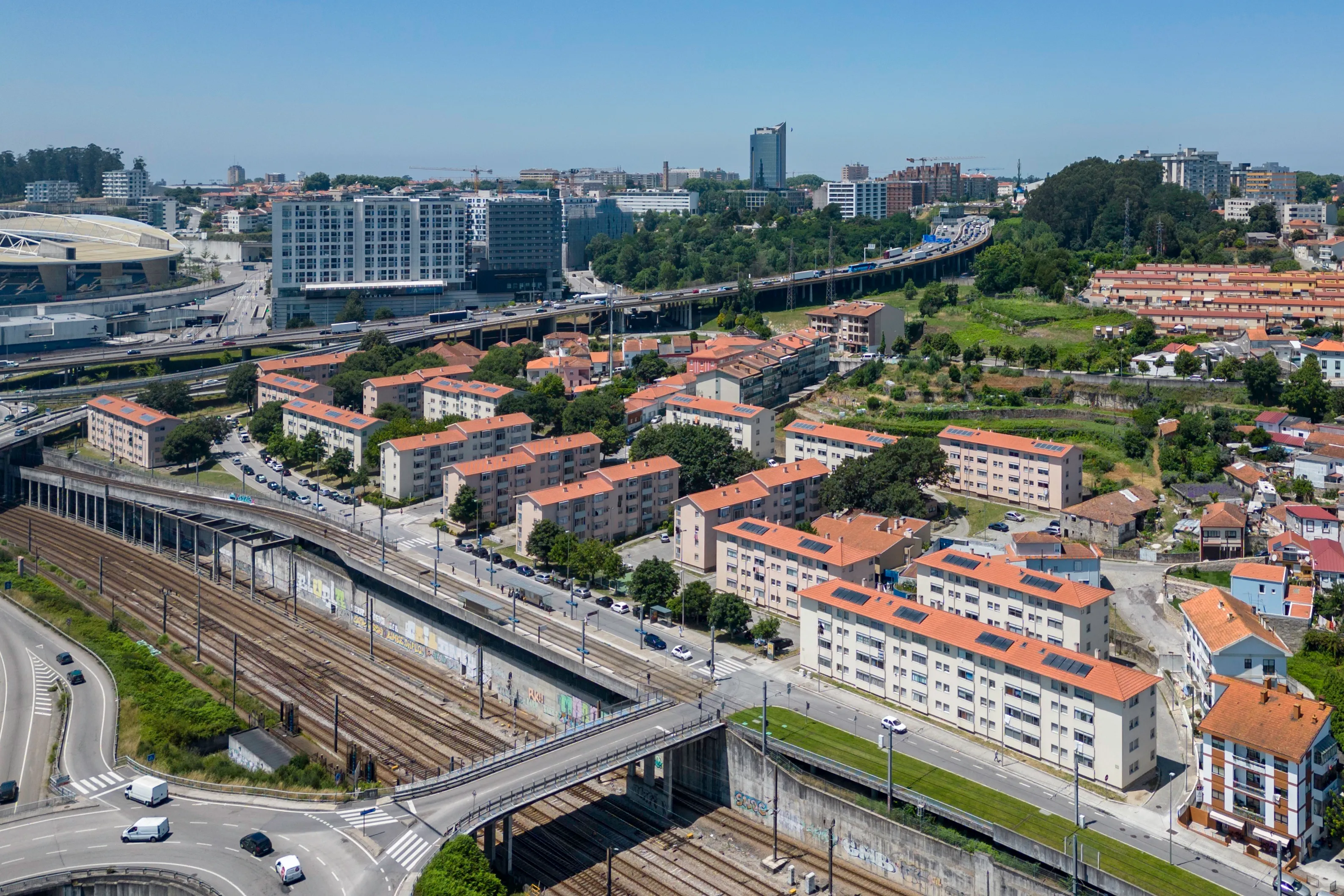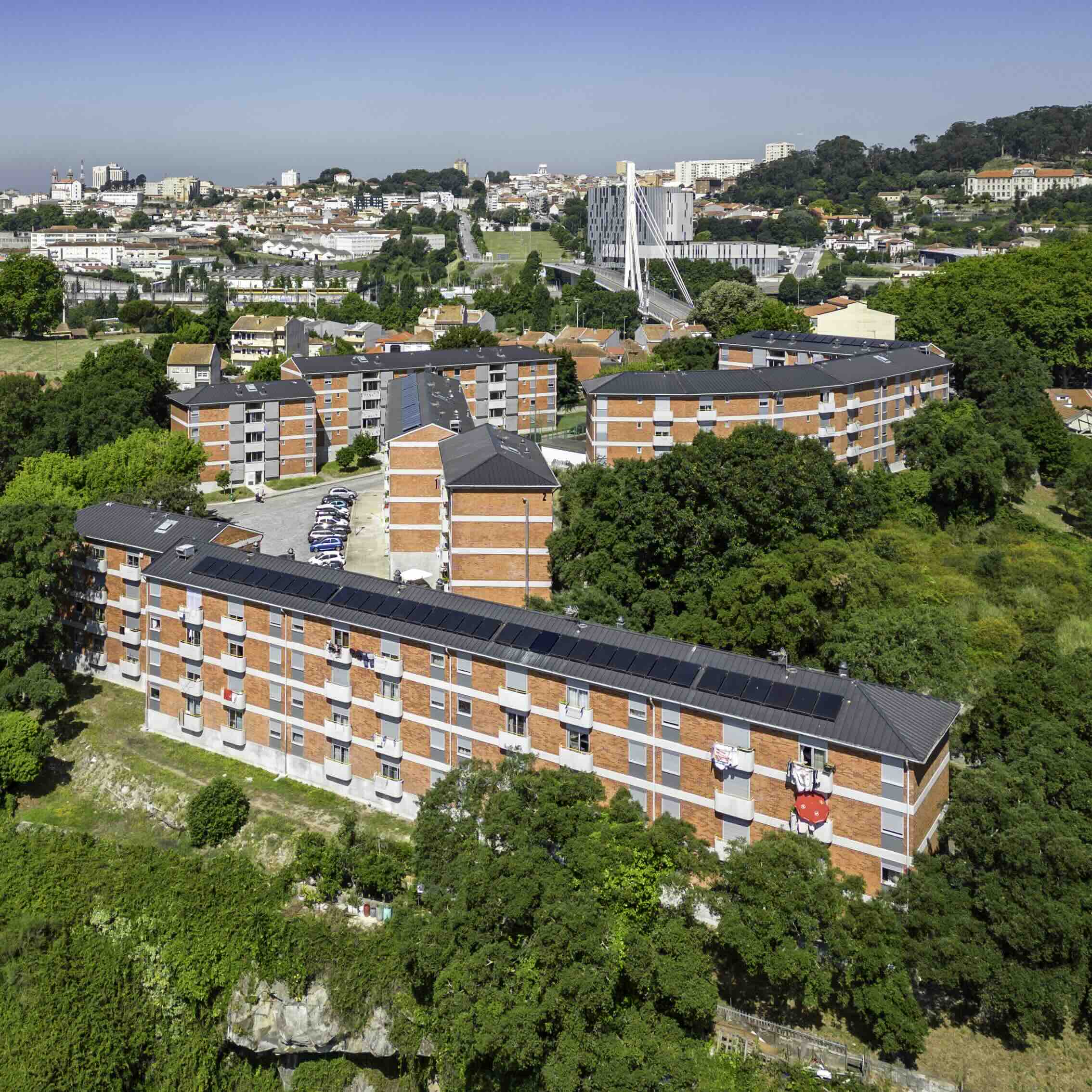 Intervenção de promoção da eficiência energética e racionalização dos consumos em 13 (treze) edifícios do Bairro Social Eng. Machado Vaz, inserida num projeto global de reabilitação física, económica e social dos Bairros Sociais, (propriedade municipal), visando alcançar resultados significativos em termos de emissões de carbono, de custos energéticos e do conforto nas habitações.